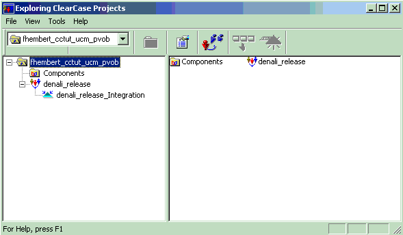DevOps Code ClearCase® creates the UCM project component (denali_release) and an integration stream (denali_release_Integration).