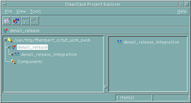 DevOps Code ClearCase® creates the UCM project component (denali_release) and an integration stream (denali_release_Integration).