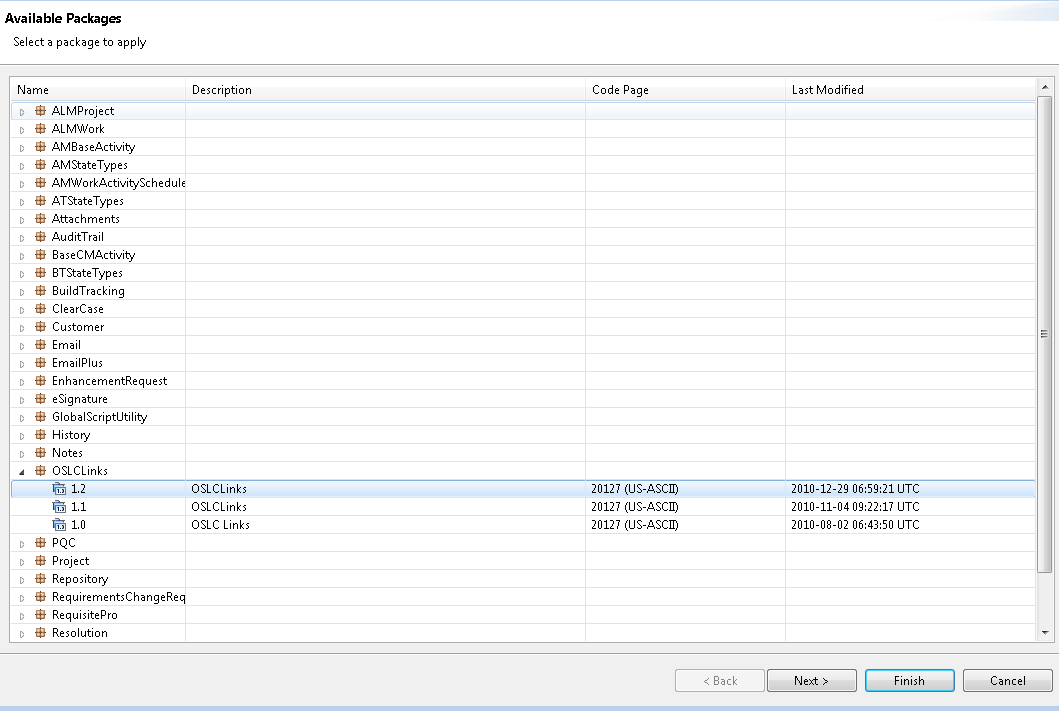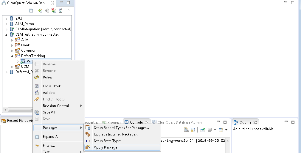 To apply the OSLC package to ClearQuest, open the ClearQuest Designer, and select