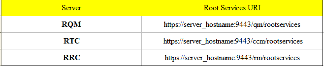 - Rational® Quality Manager server (RQM): https://hostname:9443/qm