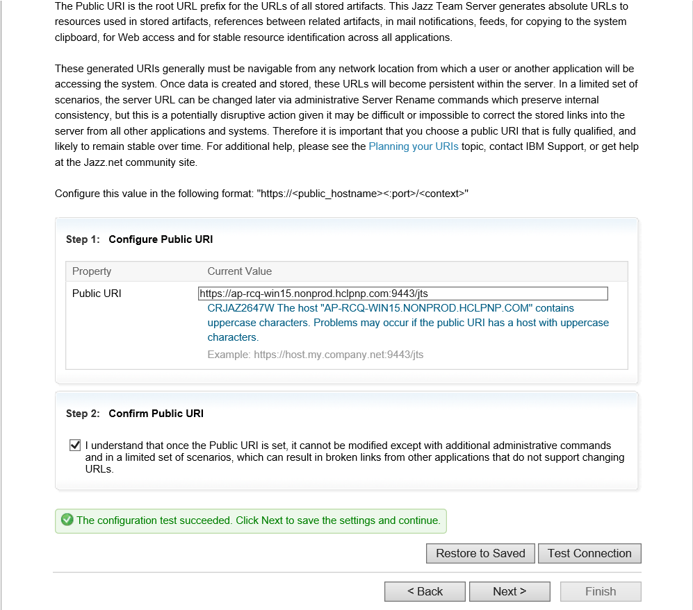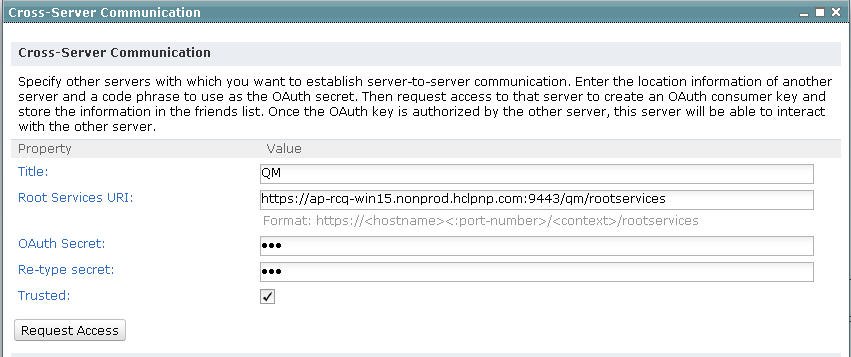 - Launch https://ap-rcq-win15.nonprod.hclpnp.com:9443/qm/admin on another machine, and change the hostname as per your machine that you used for the previous steps.