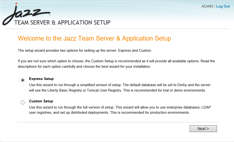 - The CLM does not start automatically, so go to C:\Program Files\IBM\JazzTeamServer\server and select “server.startup”, and run it as administrator.