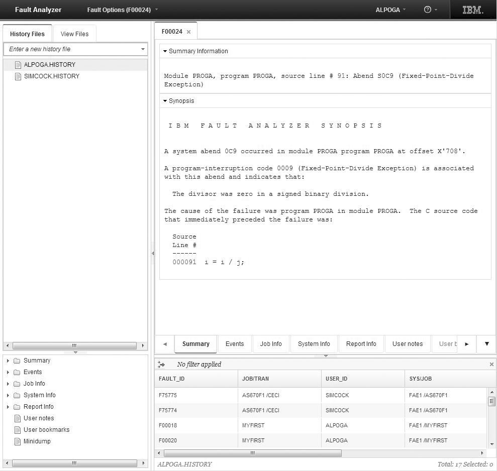 Fault Analyzer の Web インターフェースが Eclipse プラグインの代わりとして提供されています。ユーザー・コンピューターにソフトウェアをインストールする必要はありません。このインターフェースのインストールについては、Fault Analyzer Web インターフェースのインストールを参照してください。Fault Analyzer Web インターフェースは、いったんインストールしてしまえば、Web ブラウザーを開いて次の URL にナビゲートすることで表示できます。