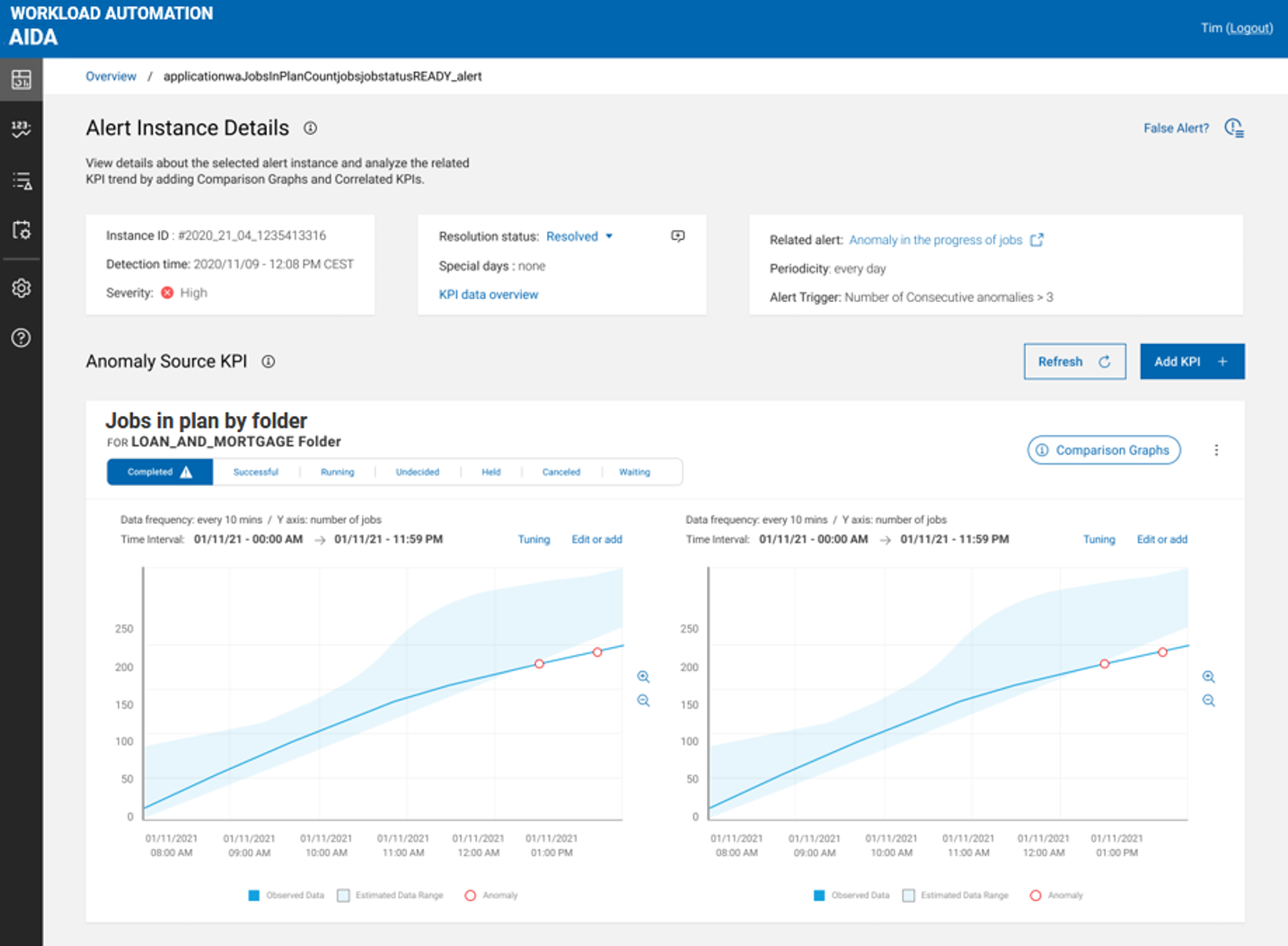 - KPIs for critical jobs: Number of uncompleted predecessors, Estimated end time, Confidence factor