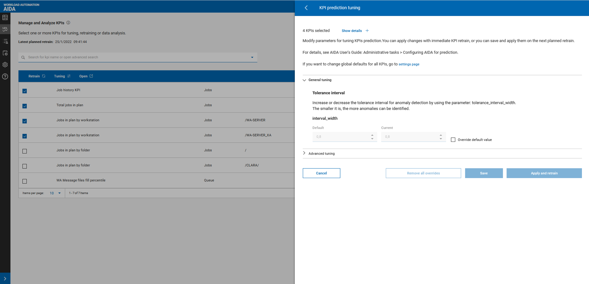 To optimize KPIs predictions, AIDA administrator can configure tuning parameters.