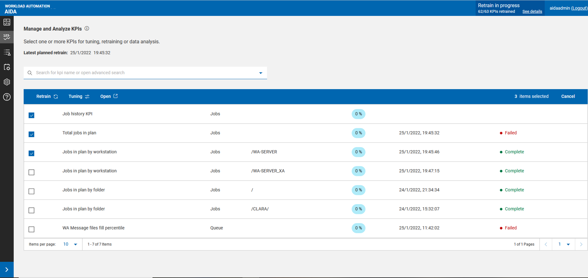 tuning parameter). Note: Every 24 hours AIDA runs an automatic retrain of all KPIs. If you want the configuration changes to take immediate effect, you can request a retrain at any time.