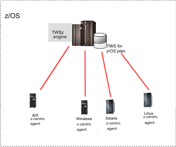 End-to-end scheduling with z-centric capabilities directly connects IBM Workload Scheduler z-centric agents to IBM® Z Workload Scheduler, that is the master domain manager for the distributed network.