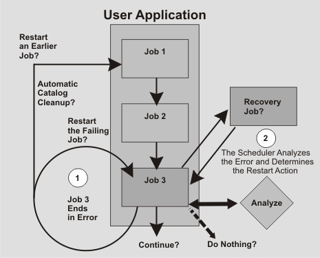 Recovery of jobs and started tasks. Automatic recovery actions for failed jobs are specified in user-defined control statements. Parameters in these statements determine the recovery actions to be taken when a job or started task ends in error.