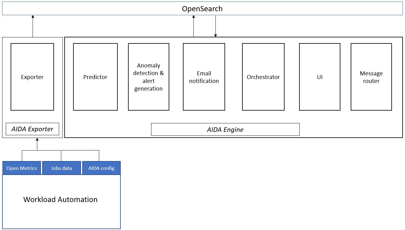 AIDA is composed of two major components: AIDA Exporter and AIDA Engine. Each component contains a number of services: