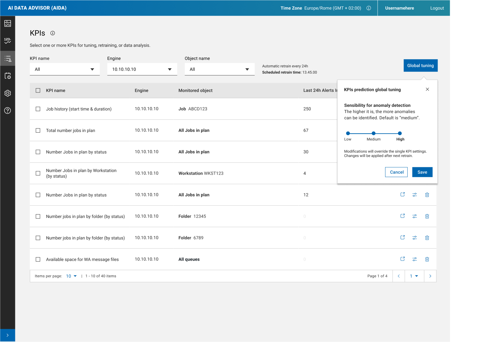 With AIDA you can fine-tune KPIs prediction and analyze the KPIs trend over time.