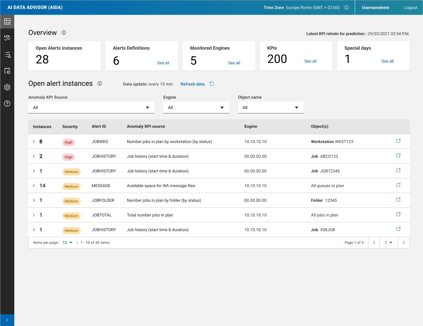 - The subdivision criteria of the alert instances. Depending on the KPI, it can be job status, star time/duration or queue.