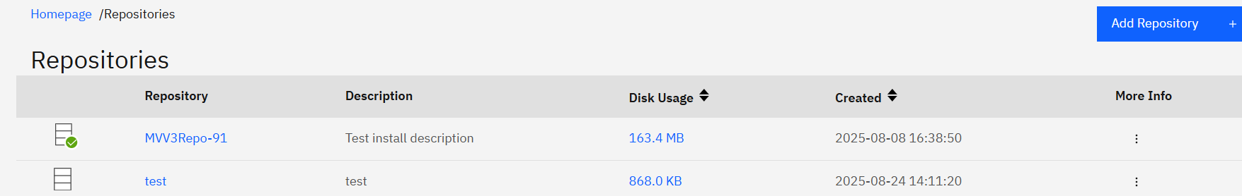 If successful, the new repository will appear in the repositories list and be available for import processing.