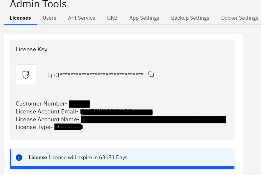 Admin Tools from the menu. The Admin Tools page is displayed by default at the Licenses tab.