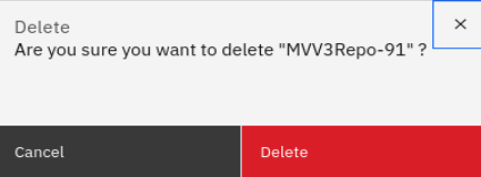 Note:The current default repository cannot be deleted. This option will be disabled if it is attempted. Change your default repository if needed.Note:This action will result in permanent repository data loss. This action can only be reversed if there is an available repository backup to restore from.