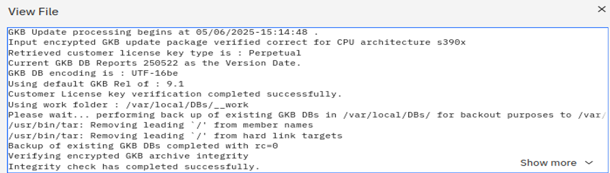 - If you click on the View Logs button, the GKB update process output log