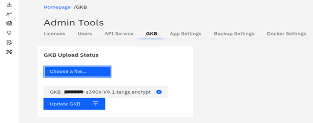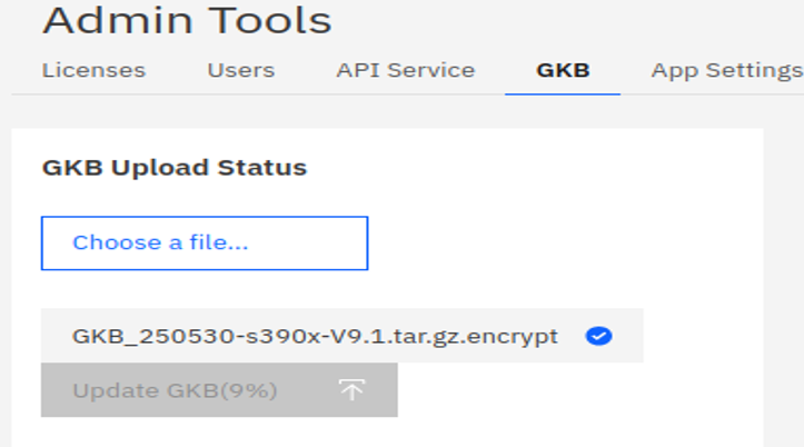 - Once you can select your file from the Choose a file option, select the Update GKB button to execute the upload and GKB update process.