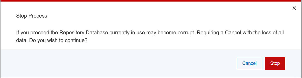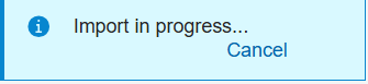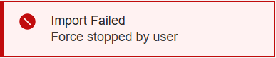Note:Canceling an import process will result in the repository database becoming unusable. A Repository ‘reset’ (losing all data) will be required to make the repository eligible again to receive import data.