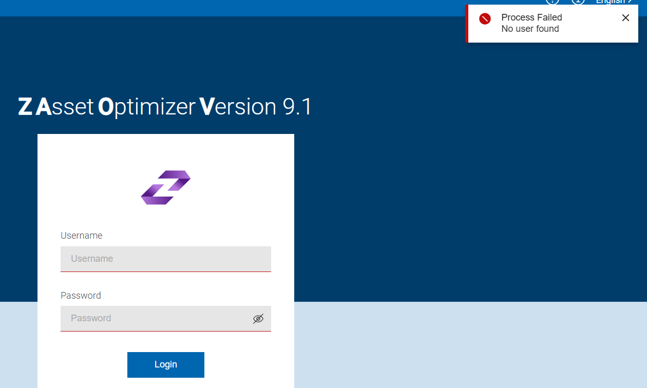 Note:If you enter an invalid Username or Password, a warning message appears as shown:Figure 4. Invalid Credentials Warning Message