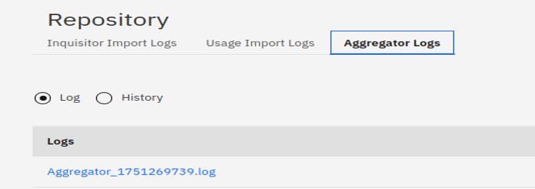 To view the log file for the aggregator execution, select the Aggregator Logs tab as displayed: