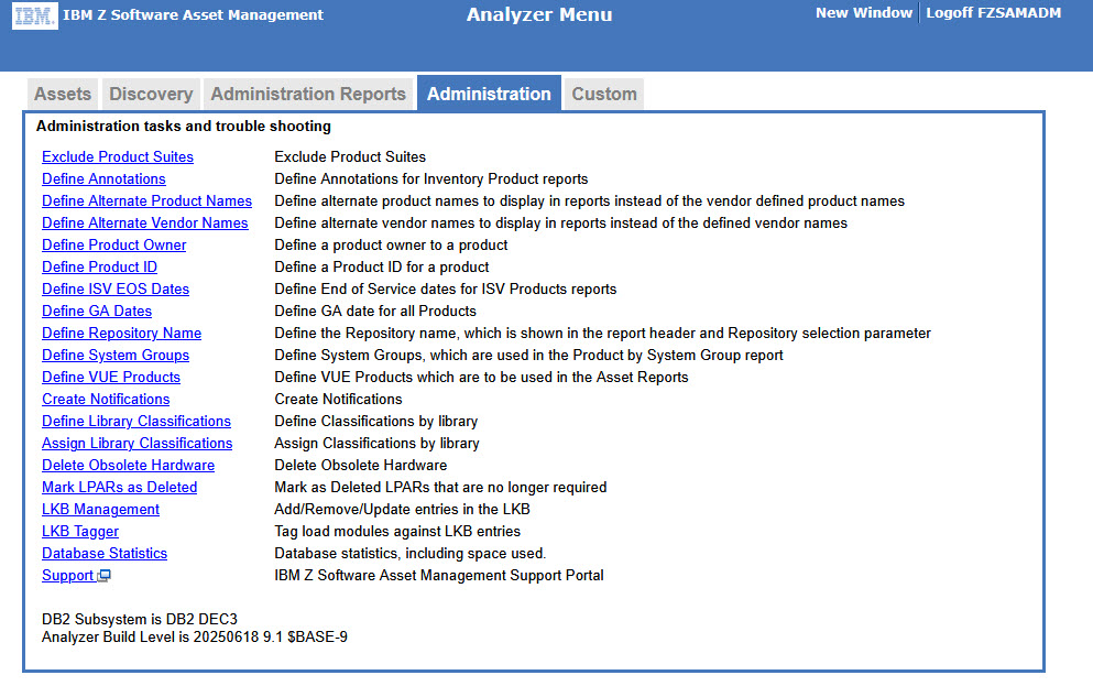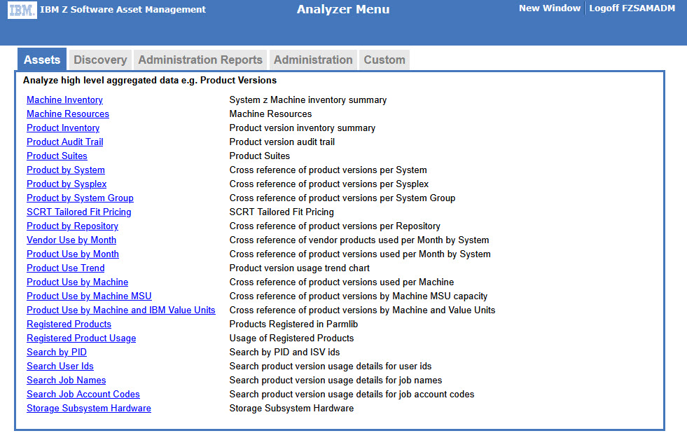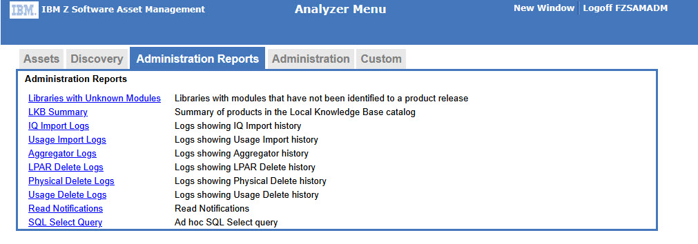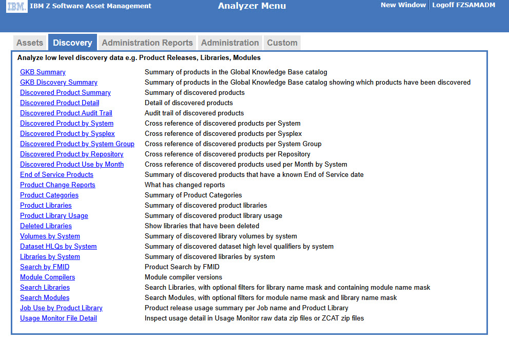 With the Analyzer reporting utility, you can log in with a browser to gain access to the Analyzer Asset, Discovery, and Administration reports and to any Custom reports that you create.